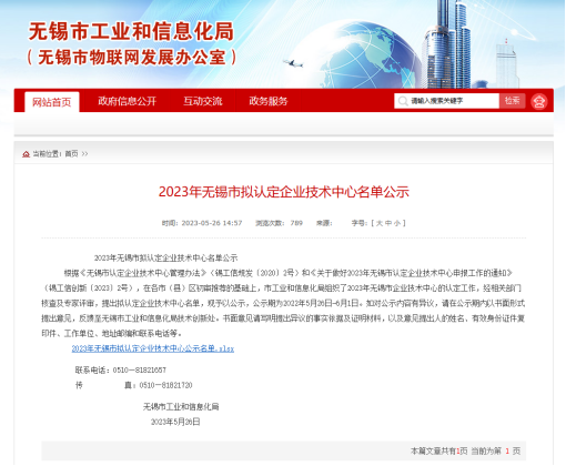 近日,市工业和信息化局组织了2023年无锡市企业技术中心的认定工作,经相关部门核查及专家评审,真源科技成功入选。